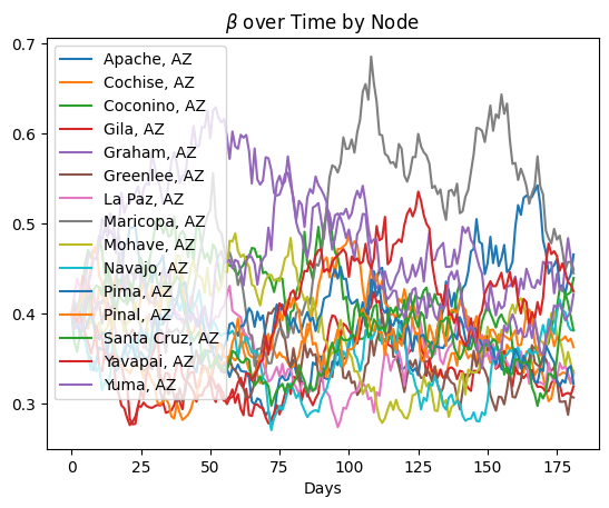 my_rng = np.random.default_rng(0)We now generate the \(\beta_t\) for each node in the simulation. In this example we are generating data for each Arizona county, so we have a \(\beta_t\) for each.